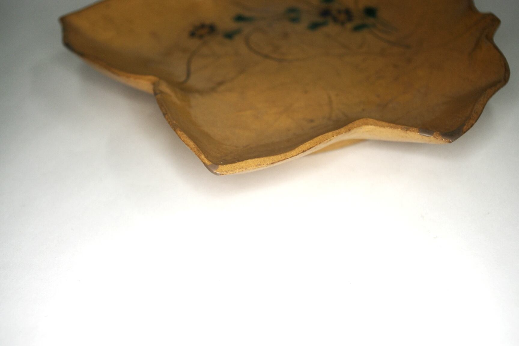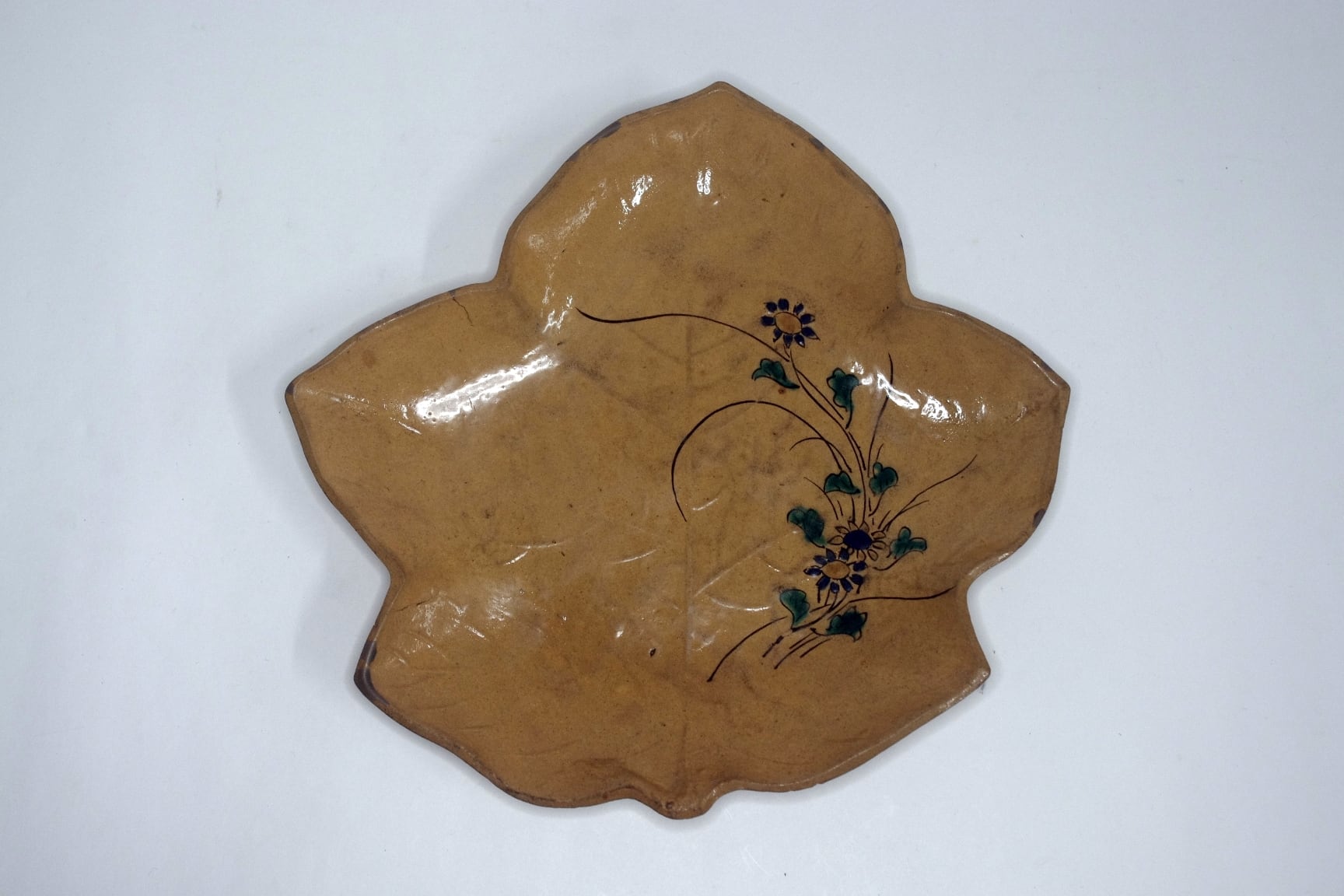 布志名焼 紅葉形草花図皿 傷多数